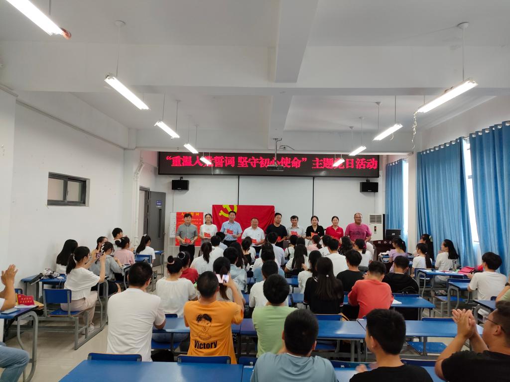 活动以铿锵恢宏的入党誓词拉开帷幕,面对鲜红的党旗,全体党员一起高举右手,庄严宣誓:“我志愿加入中国共产党……随时准备为党和人民牺牲一切,永不叛党。”现场激昂的宣誓声音,强烈震撼着在场的每一位党员,一字一句,神圣而豪迈,抒发了每位党员对党忠诚的决心。